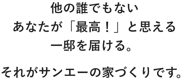 あなただけの特別な一邸を、丁寧にお造りします。ぜひサンエーにご相談下さい。