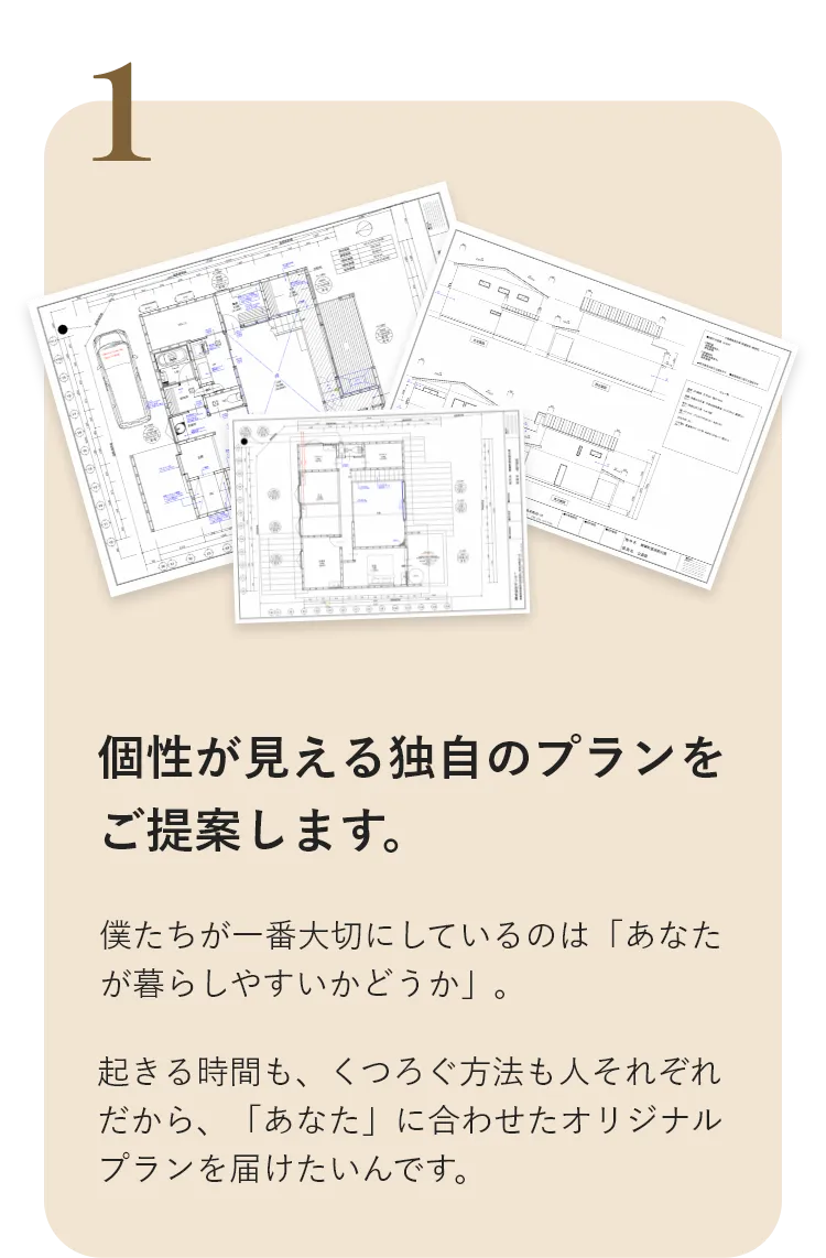 ご相談で見えた「あなたの家づくり」に必要な土地の情報や、間取りプランをご提案します。