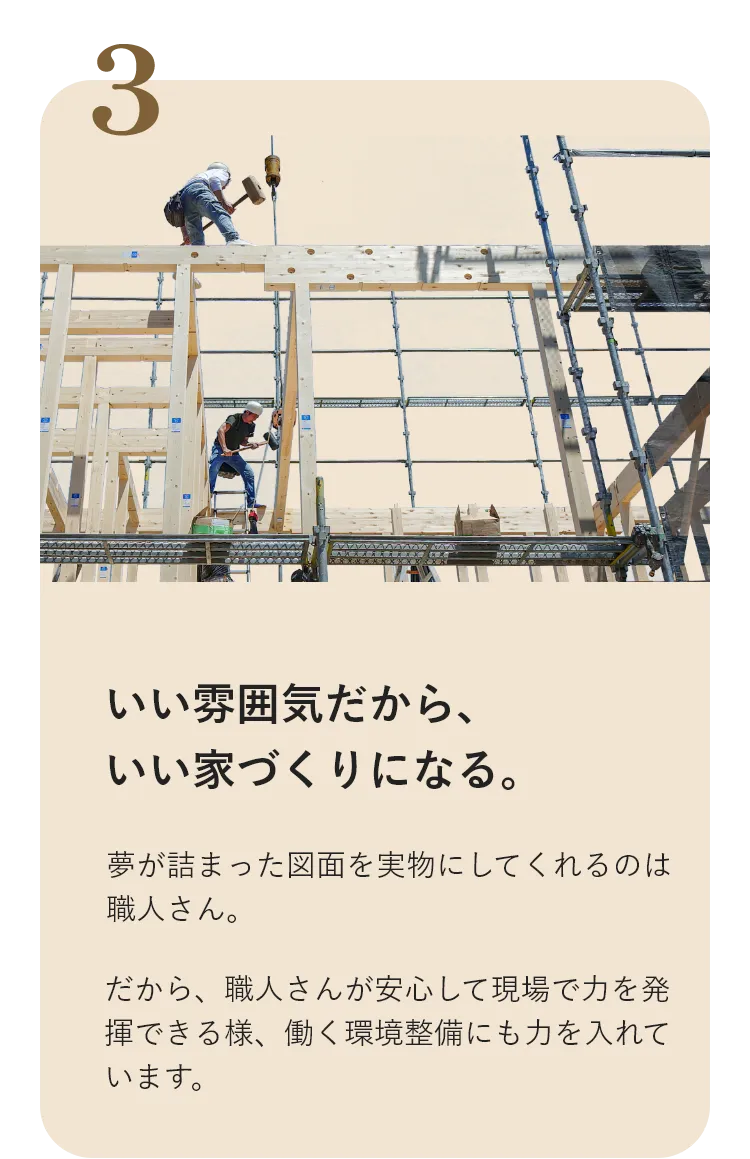 設計したとおりの家が建つよう、現場の運営を行います。アフターサポートもお任せください。