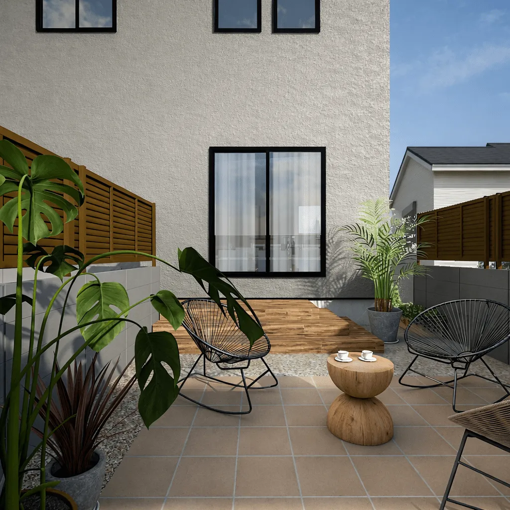 フェンスや植栽を工夫することで、周囲の視線を遮るプライベートな空間が作れます。