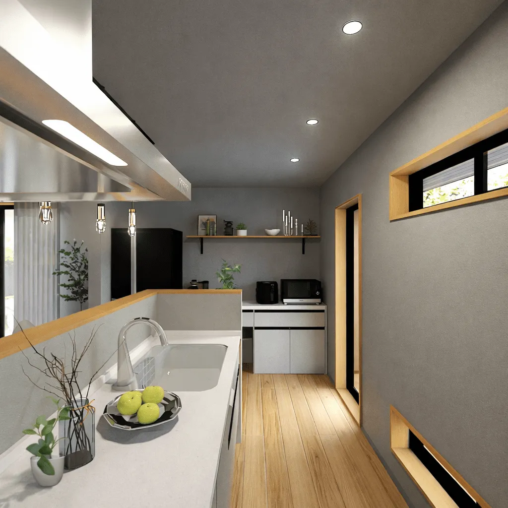 窓を開けると風も入るので、空気がこもりがちなキッチン部分も爽やかな光と風を感じられますよ。