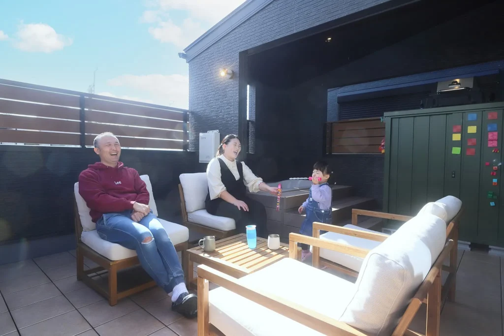 家族でバーベキューをしたり、お子様の友達を呼んでパーティーをしたり、外で夕涼みをしながらプロジェクターで映画を見たり…。