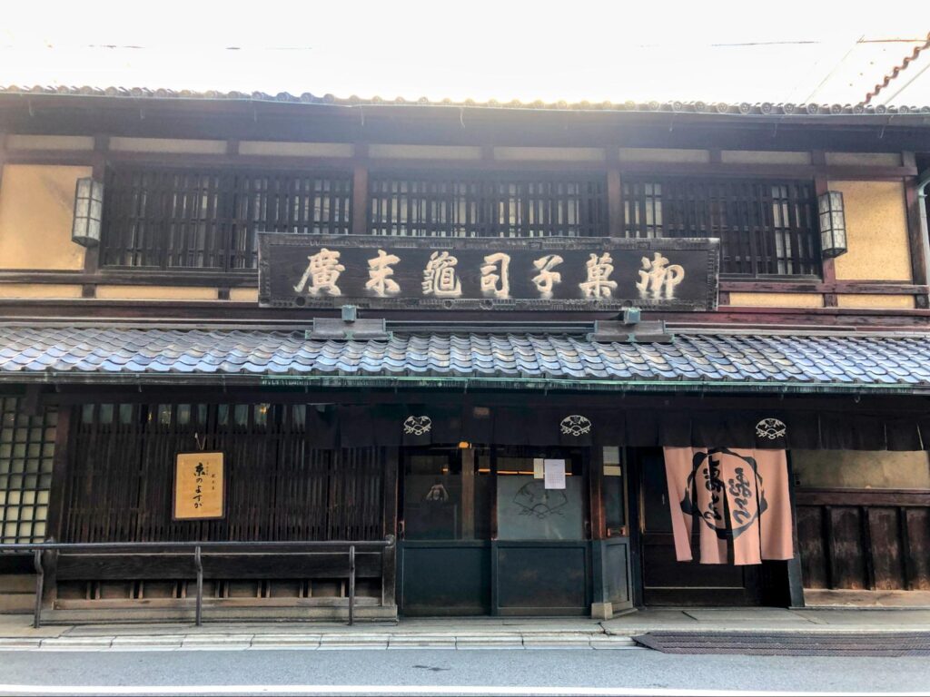 三条通の北側を通る姉小路通の一部も、姉小路界隈地区建築協定が結ばれ、歴史ある景観が保たれているエリアです。そのなかでもひときわ目を引く重厚な町家が、創業200年以上の老舗和菓子店「亀末廣」。