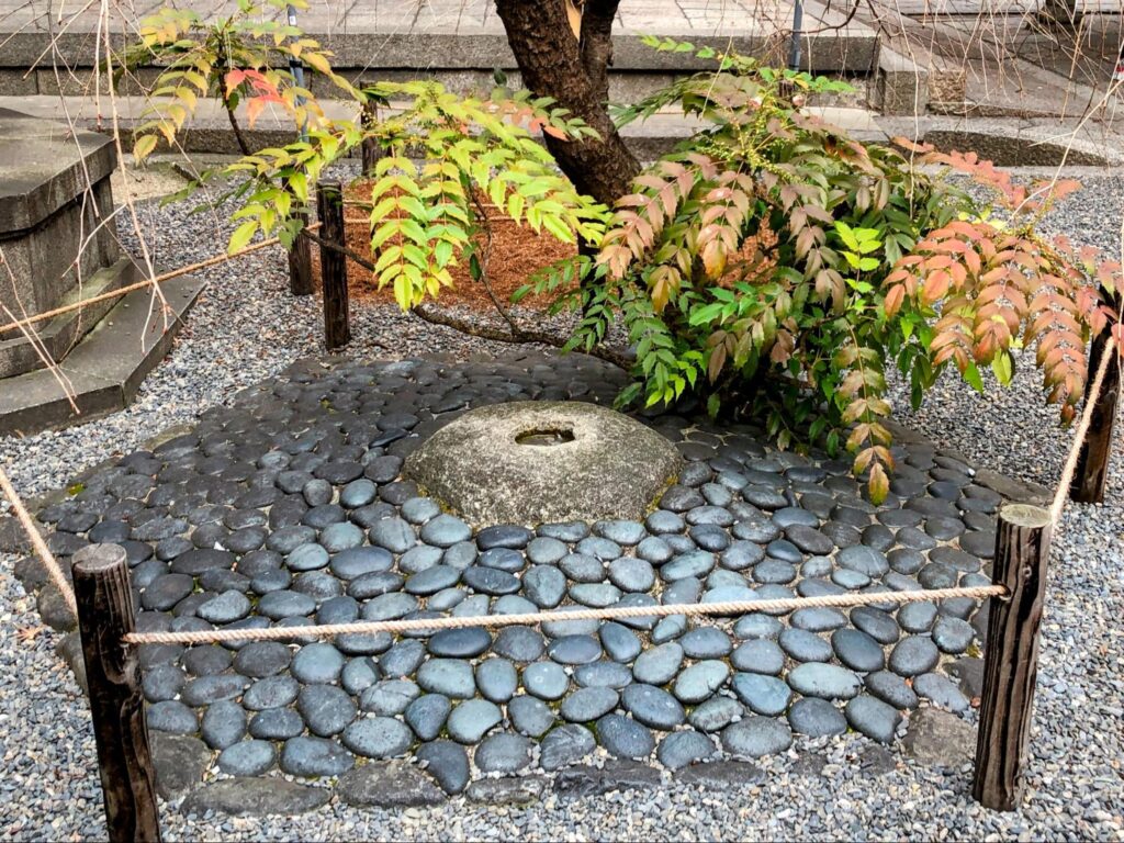 頂法寺のお堂は平安遷都以前、現在よりもう少し南にあったとされています。お堂のある場所に道を作りたいと天皇が願ったところ、一晩のうちにお堂自ら移動してくれたのだとか。へそ石は、そのときのお堂の礎石だったといわれています。