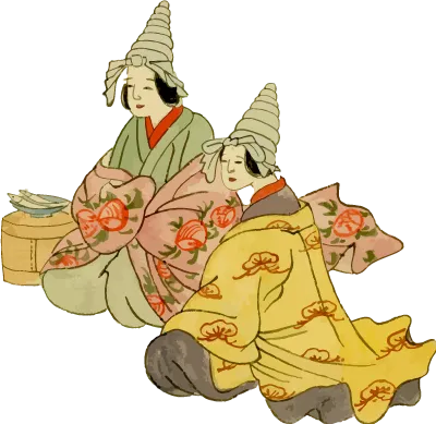 桂女は神功皇后(じんぐうこうごう)に仕えた女性がルーツとされ、白い布を頭に被り、桂川の鮎や飴を売って歩いたほか、時代によっては巫女や産婆などの役割も果たしていたそうです。