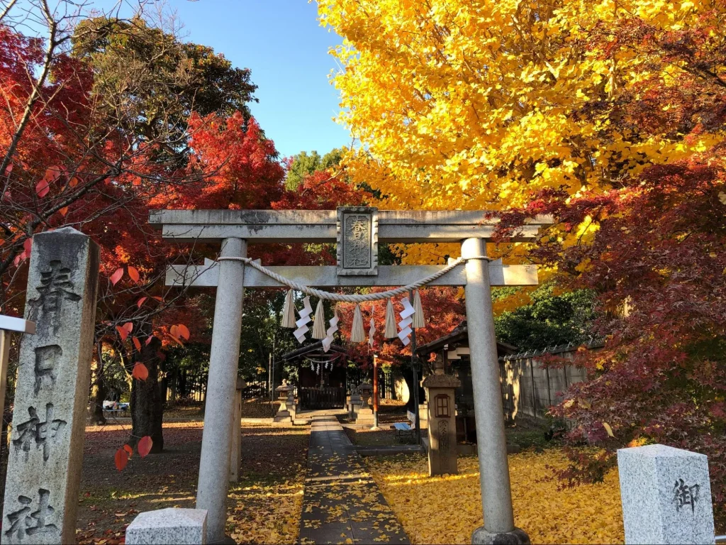 こぢんまりとした境内ですが、秋にはイチョウやカエデなどの紅葉が美しい神社です。ベンチもあり、子連れでお散歩に来ている人の姿も見かけましたよ。